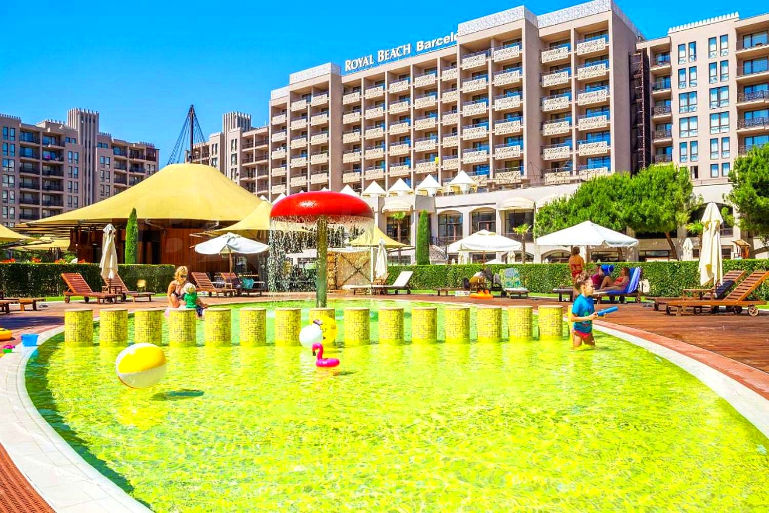 Apart-Hotel Royal Beach Barcelo is built to the modern construction designs, of high quality materials, occupying a large space - gardens of 9000 sq.m. and swimming pools (1700 sq.m.), which provide pleasant feeling of space, freedom and bring enjoyment. Here you will find the most modern services and amenities: Internet cafe, Wi-Fi, stores, POS terminal, ATM, money exchange, car rental, garages, beauty salon, doctor, room service, laundry, ironing, dry cleaning, two saunas, tennis court, 3 jacuzzi, 2 solarium, Turkish bath, massage - excellent conditions for your unforgettable seaside holidays.