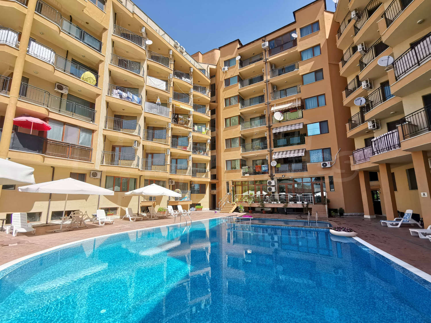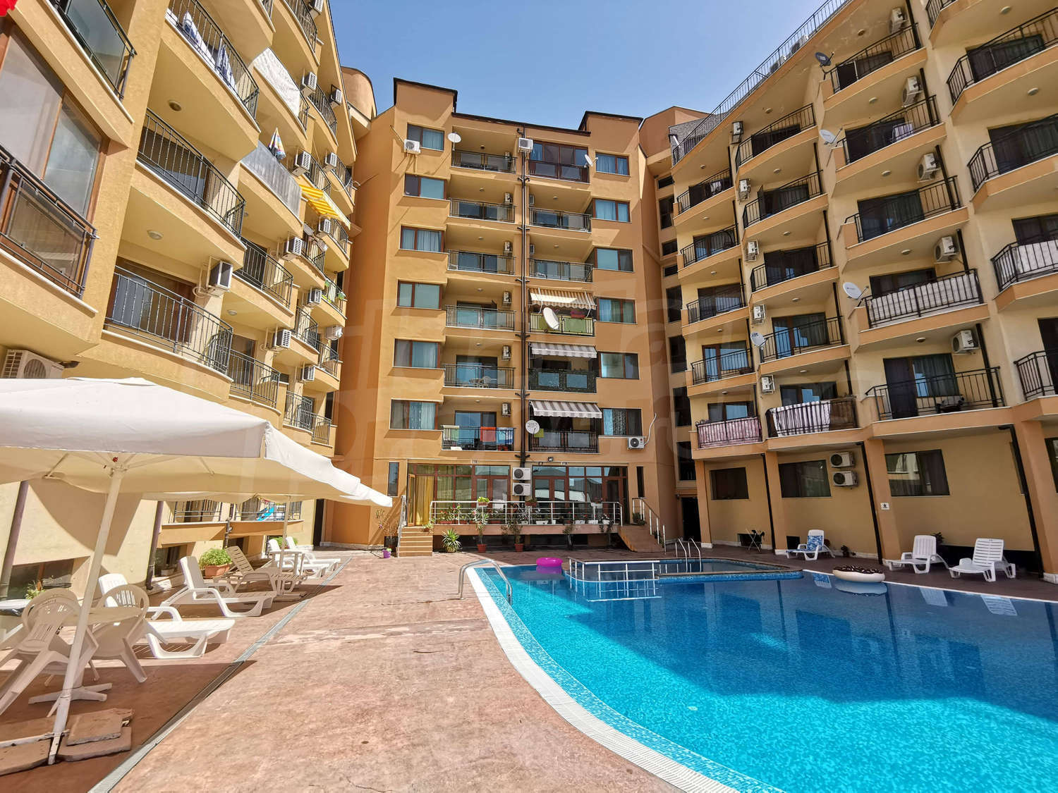The complex provides excellent conditions for a pleasant summer vacation and is undoubtedly its convenient location in the central part of the resort, with easy access to all the places of entertainment: restaurants, bars, supermarkets, night clubs. There is a quick connection with the neighboring resorts Nessebar and St. Vlas. The apart-hotel offers a variety of facilities for unforgettable moments in Sunny Beach - an outdoor swimming pool, a garden with a relax zone and free parking. The closest airport is located 30 km away from Burgas.