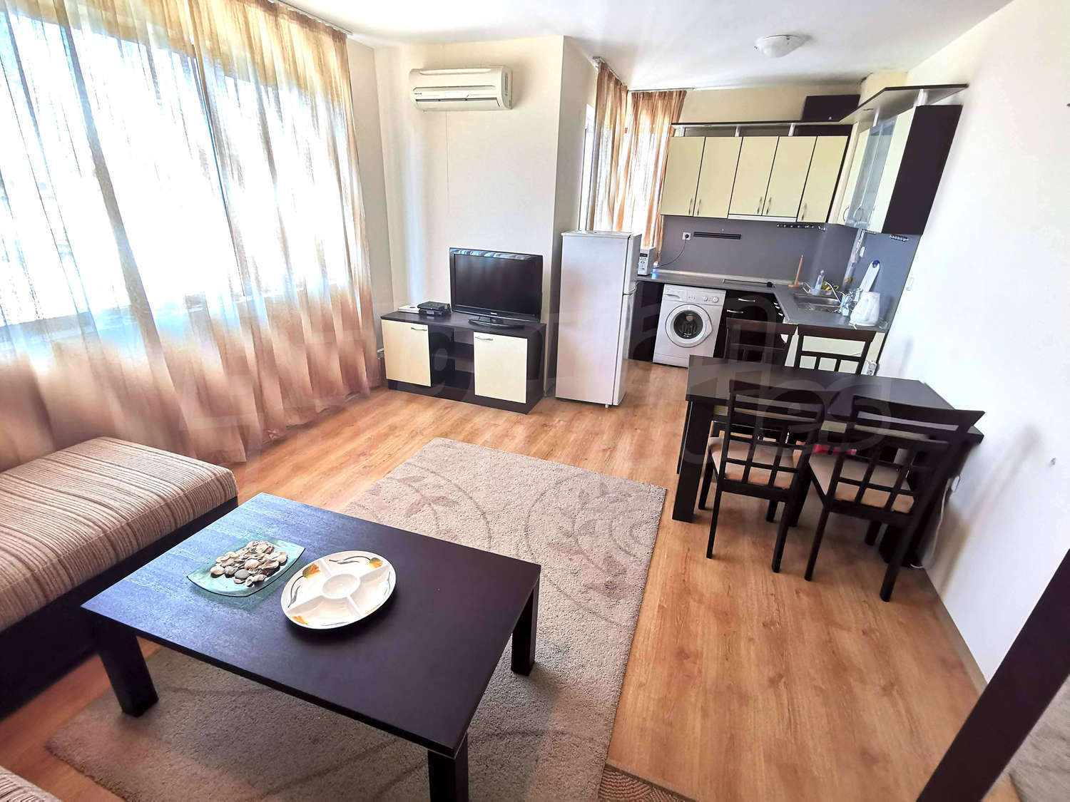 Spacious, well-equipped and furnished apartment close to the center of Sunny Beach. Fully furnished property close to the sea, Aqua park. The area offers exceptional places for entertainment and recreation.