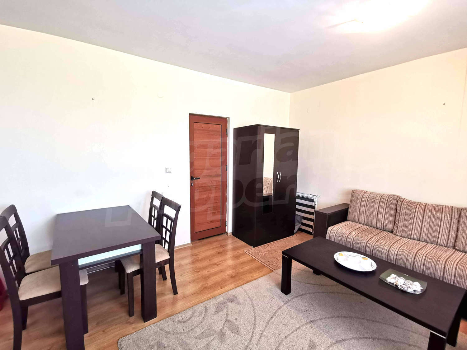 The apartment is fully furnished and ready for living or renting. The maintenance fee for the complex is 6 Euro / sq.m.