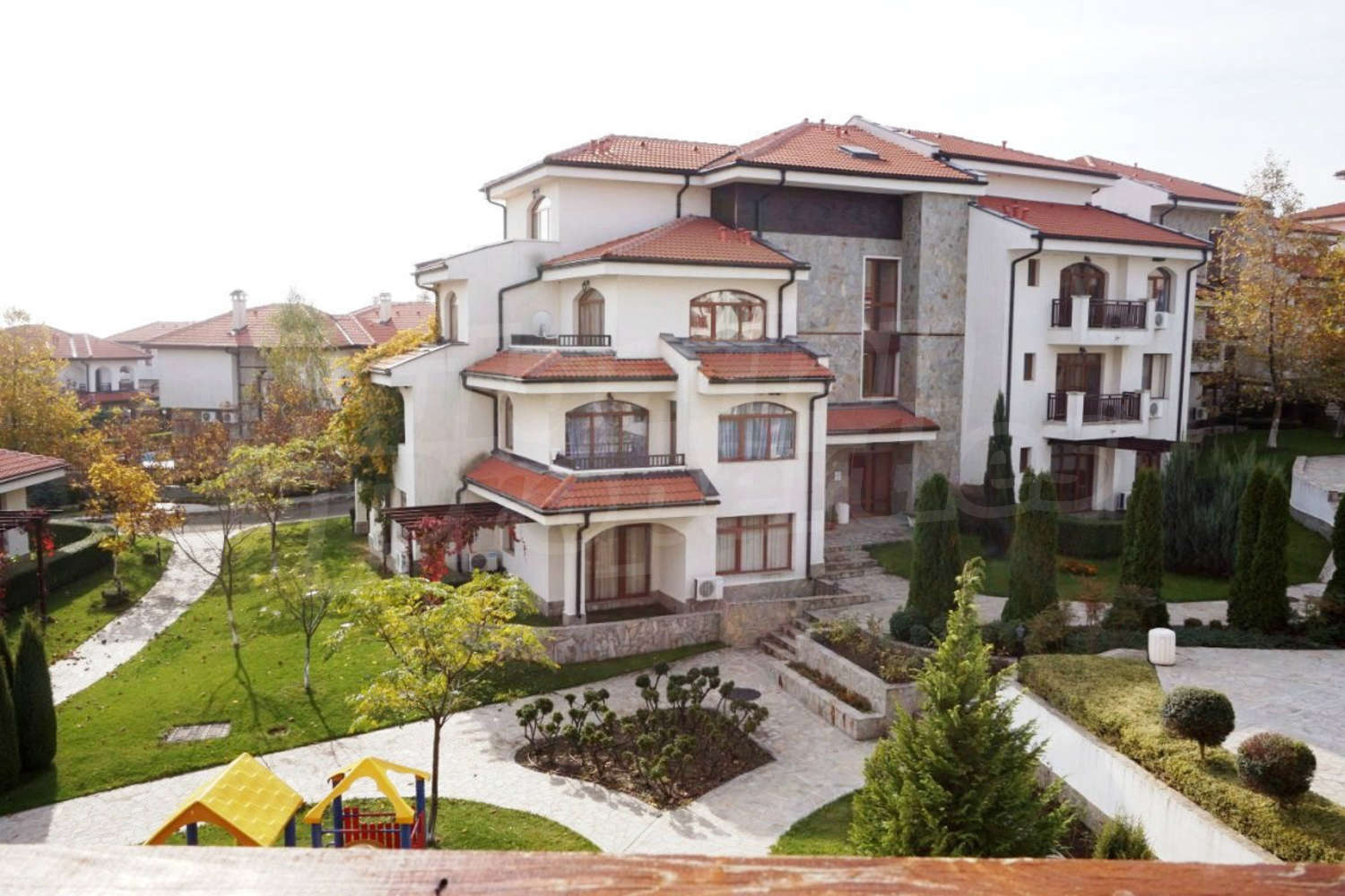We offer you this 1-bedroom apartment with a total area of 75 m2 which is situated in a gated developmen the Vineyards Resort, located between Aheloy and Kableshkovo - a unique complex on a hill with independent villas and apartments. Its strategic location next to the green hills of Stara Planina mountain, the beautiful views, the distance to the Mediterranean resorts - all this makes it a favorite and famous holiday destination. The complex has a good location, away from the noisy urban environment and at the same time only minutes away from major cities. Burgas Airport is 14 km away, the distance to Sunny Beach and Nessebar resorts is 10 km. The nearest beach is just 2 km away.
